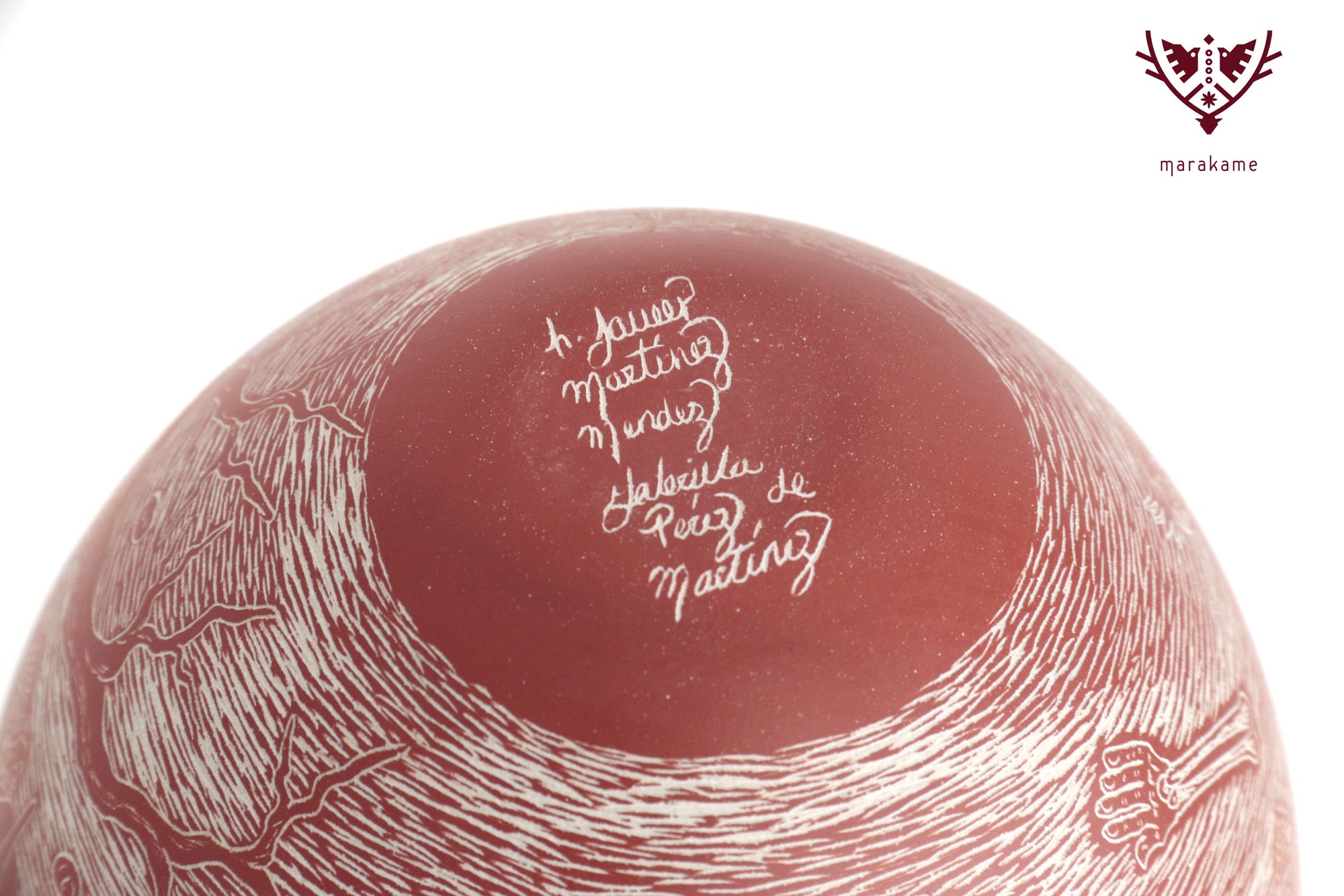 • Héctor Javier Martínez (Mata Ortiz, 1984) burst onto the Mata Ortiz pottery scene in 2008, with the characteristic style that distinguishes him to this day: the motifs of the night and day of the dead, in a model very Mexican and personal graphic. This was the result of a conversation he had with the well-known American collector Steve Rose. Héctor has been winner of the National Ceramic Award in Tlaquepaque, Jalisco in 2014, and has received important recognitions in the Annual Ceramic Competition in Mata Ortiz. He continues his work by collaborating with his partner Gabriela Pérez, with whom he shares credits in the signing of his pieces.